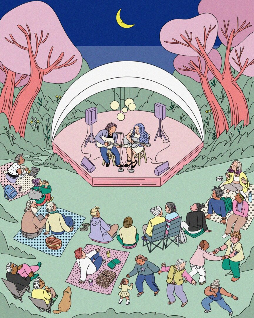 Of je het nu houdt bij het rustig laten meedeinen van je hoofd, een dappere stap-tik, of je je beste moves laat zien: het is tijd om te dansen! Op de leukste tuinfeestjes, op een festival, op een zwoele avond op het strand of op een (liefst lege) tafel… Schud je haren los en dans alsof deze avond nooit zal eindigen. Have fun! Blog vol dansillustraties Illustratie: Youlie Dessine