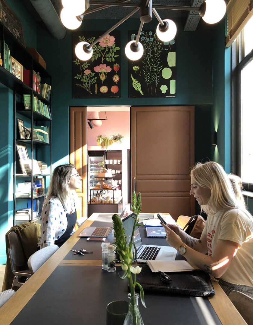 Aniek tijdens trainingsdag met Anne, Goudenlijntjes. Andere illustratoren uit hun groep: Megan McNulty, Claudi Kessels, Marlon Doomen en Rianne, Kleine dingen.