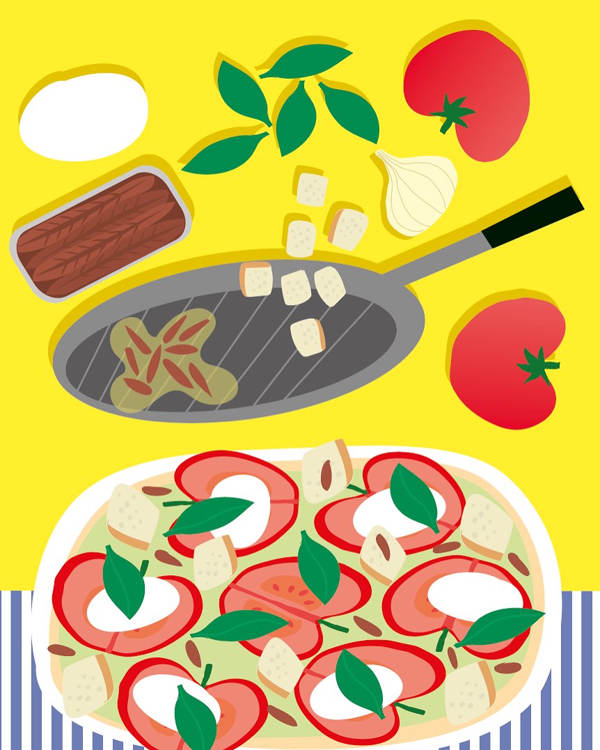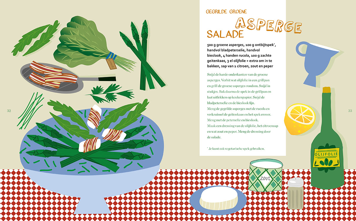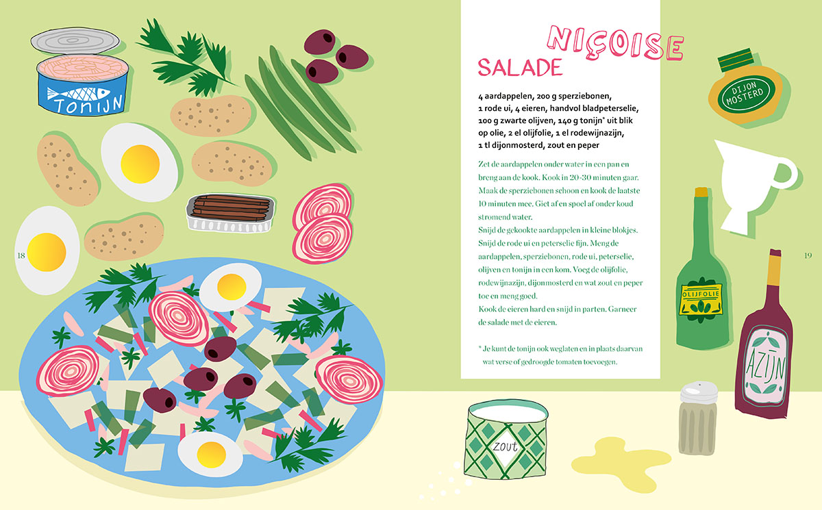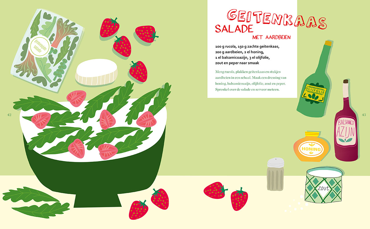 Recept uit het boek: Maak Salade geïllustreerd door Caroline Ellerbeck.